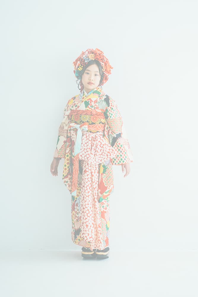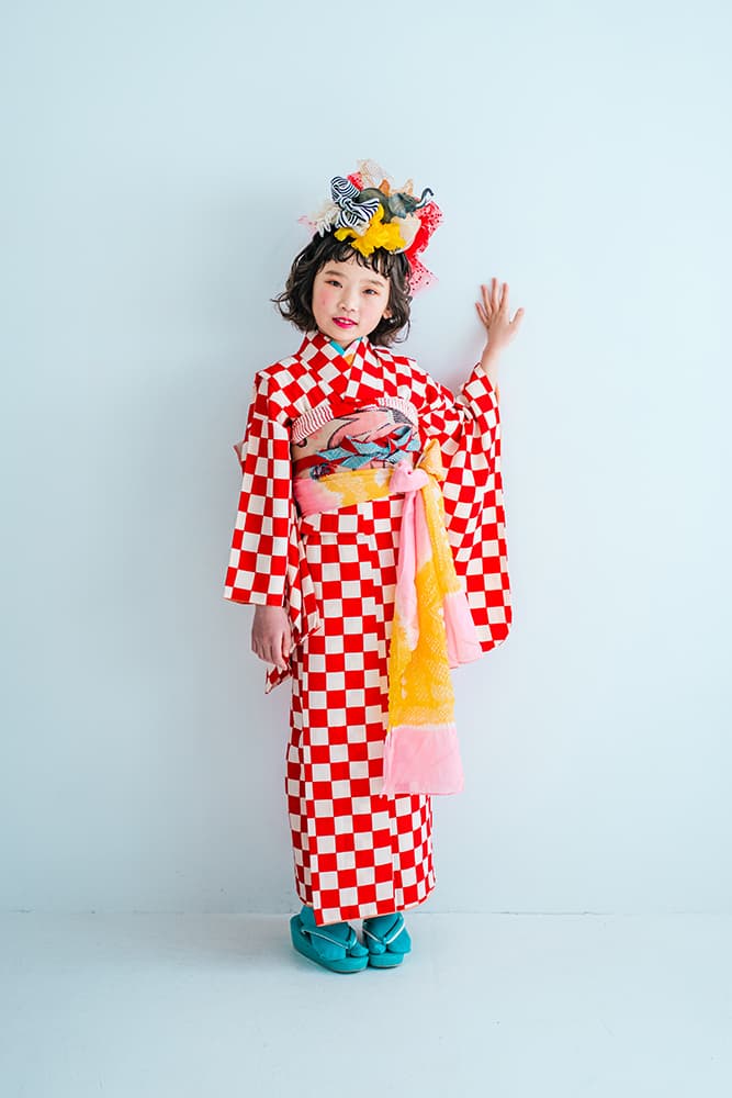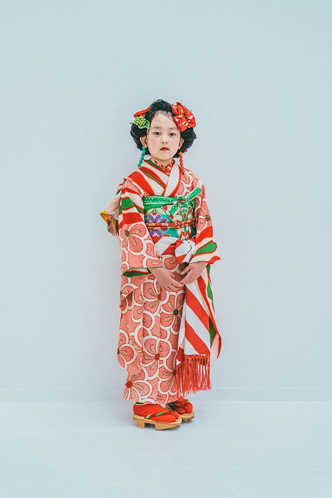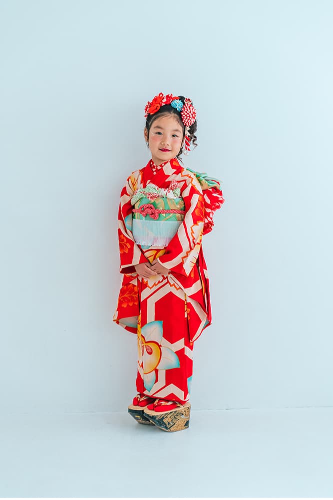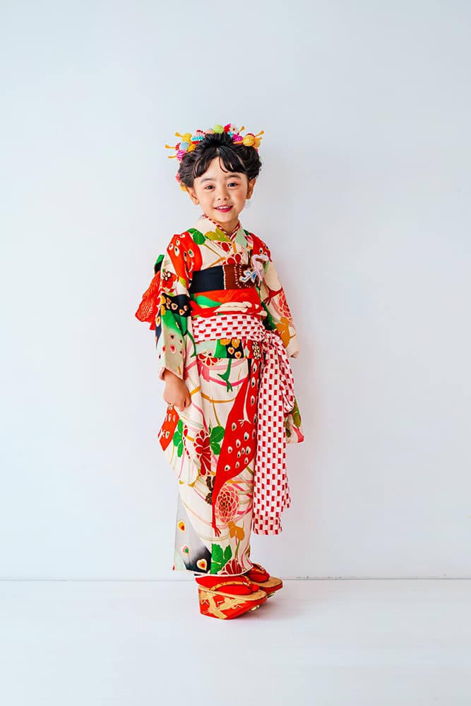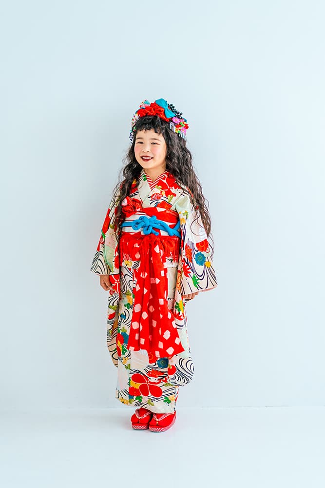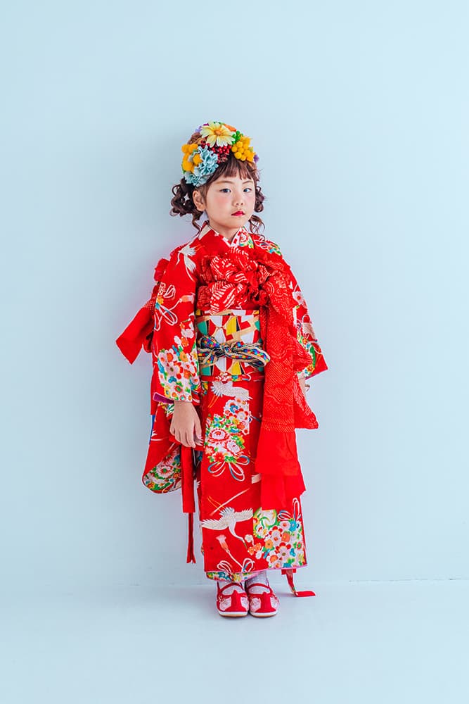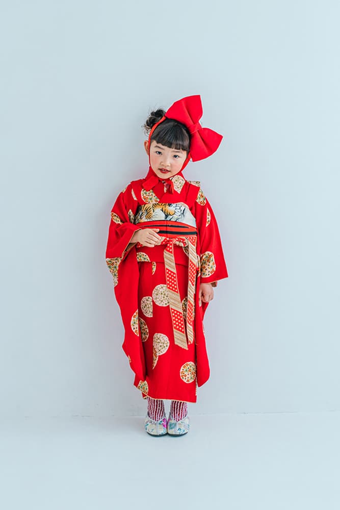 000/赤に稚児・七/115-126cm(裄56丈128)/アンティーク・絹/状態○/
