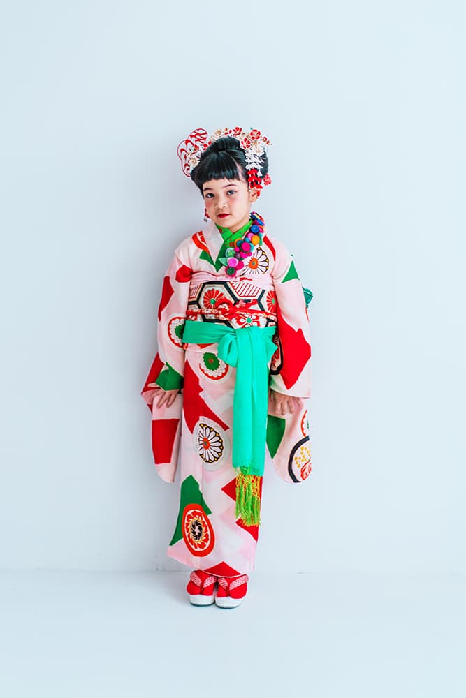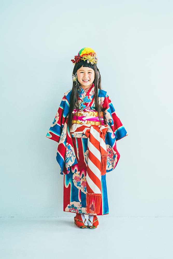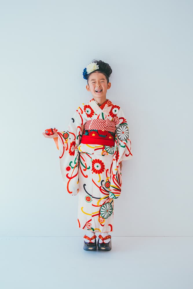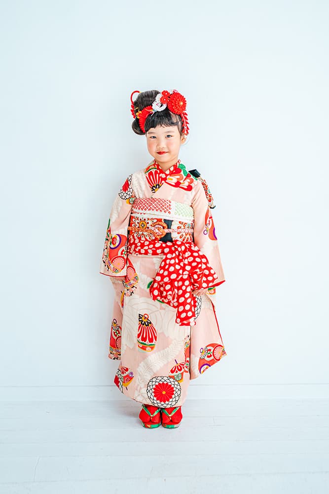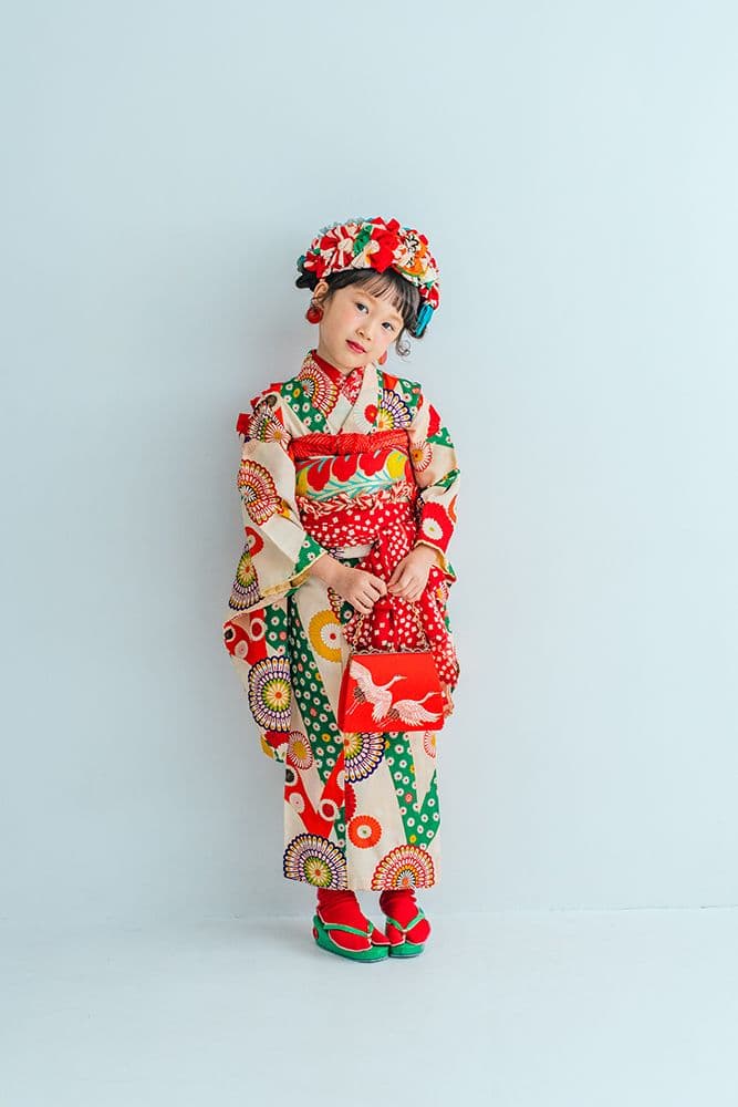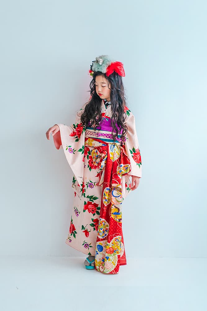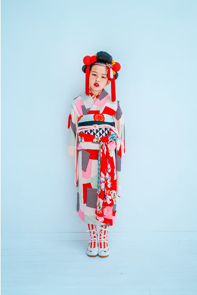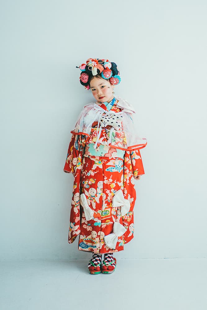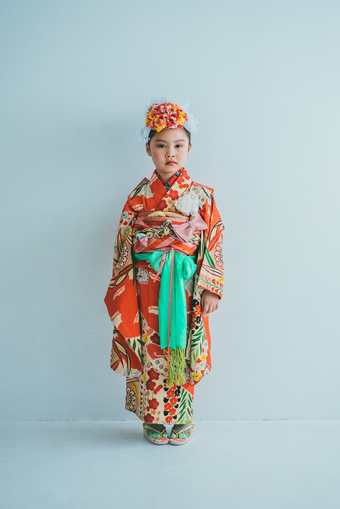000/赤に稚児・七/115-126cm(裄56丈128)/アンティーク・絹/状態○/