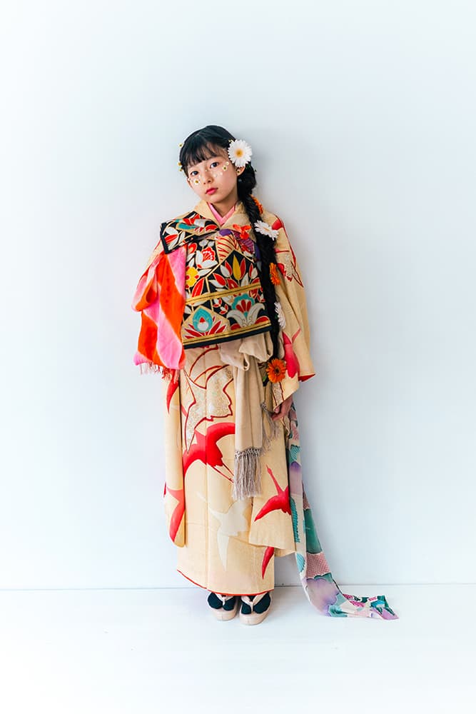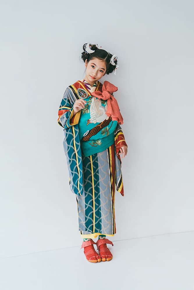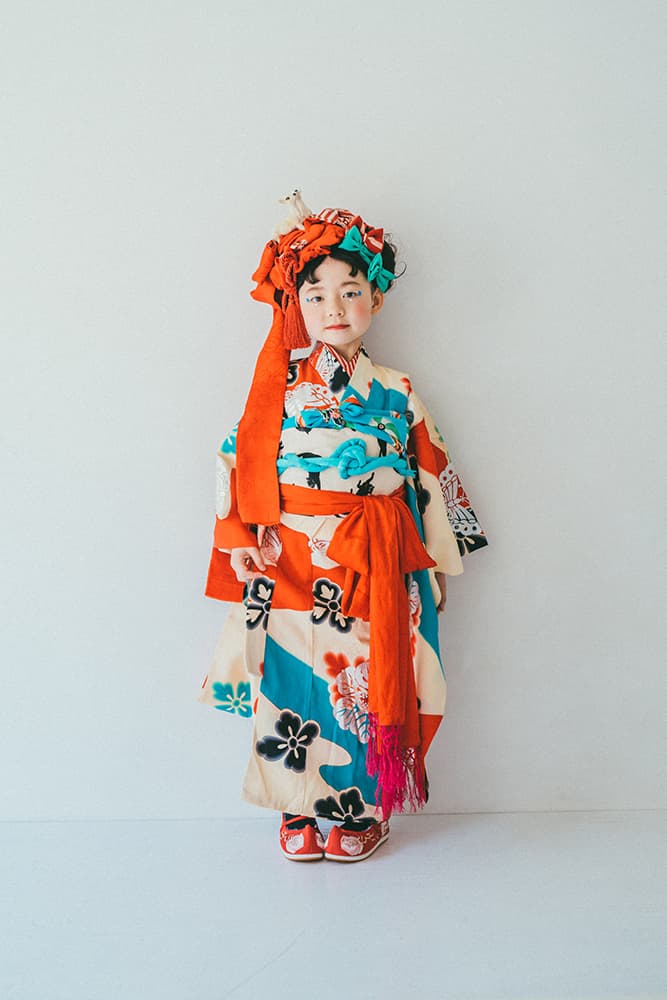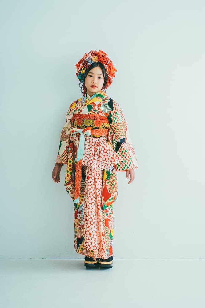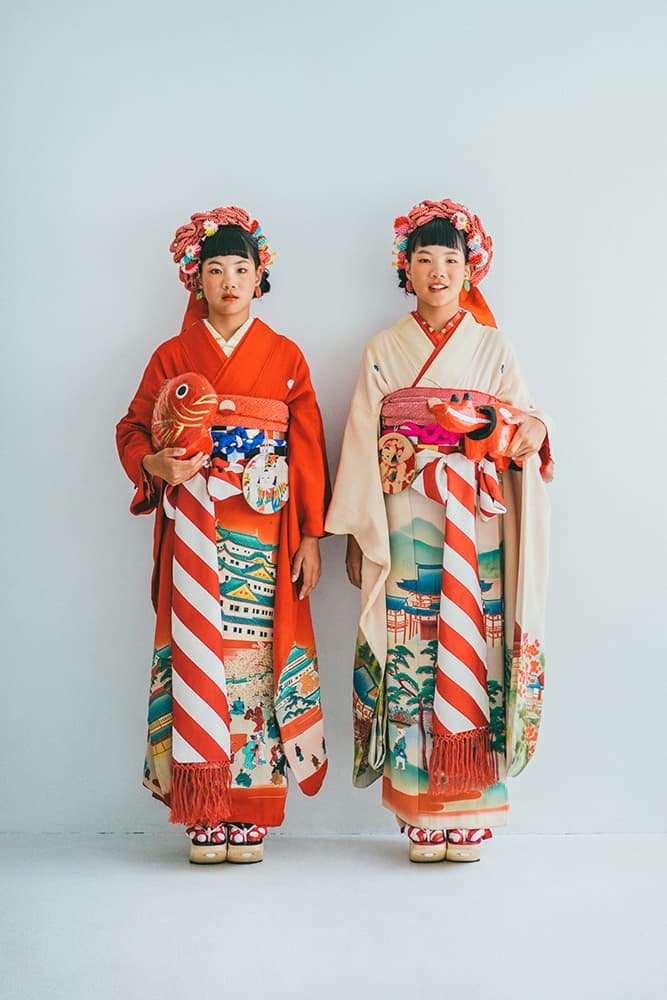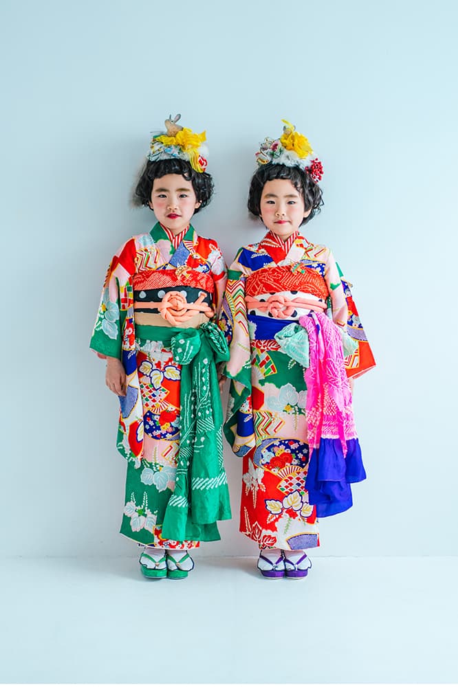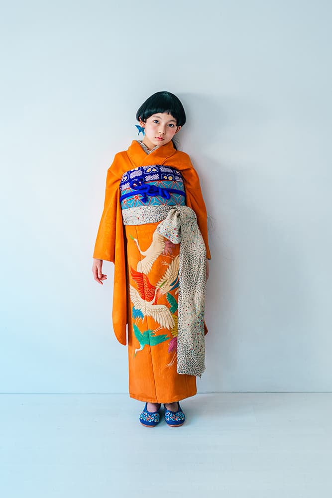 000/白に虹鶴・橙に虹鶴・双子/コーデ色違い/アンティーク