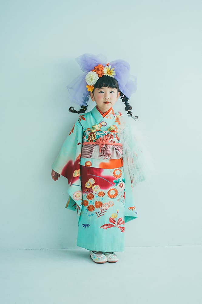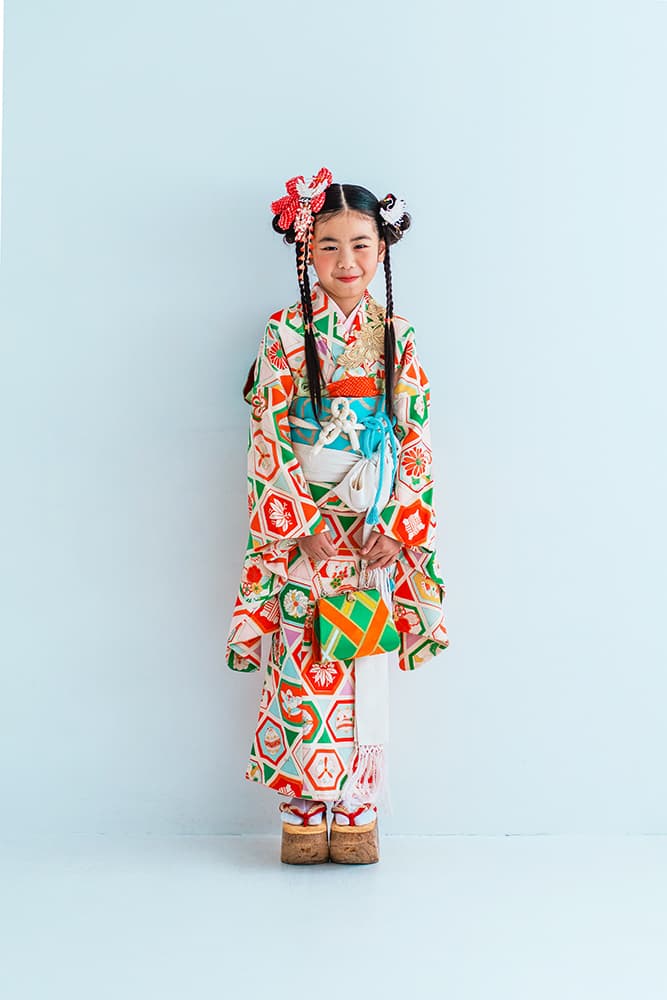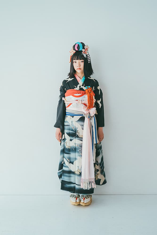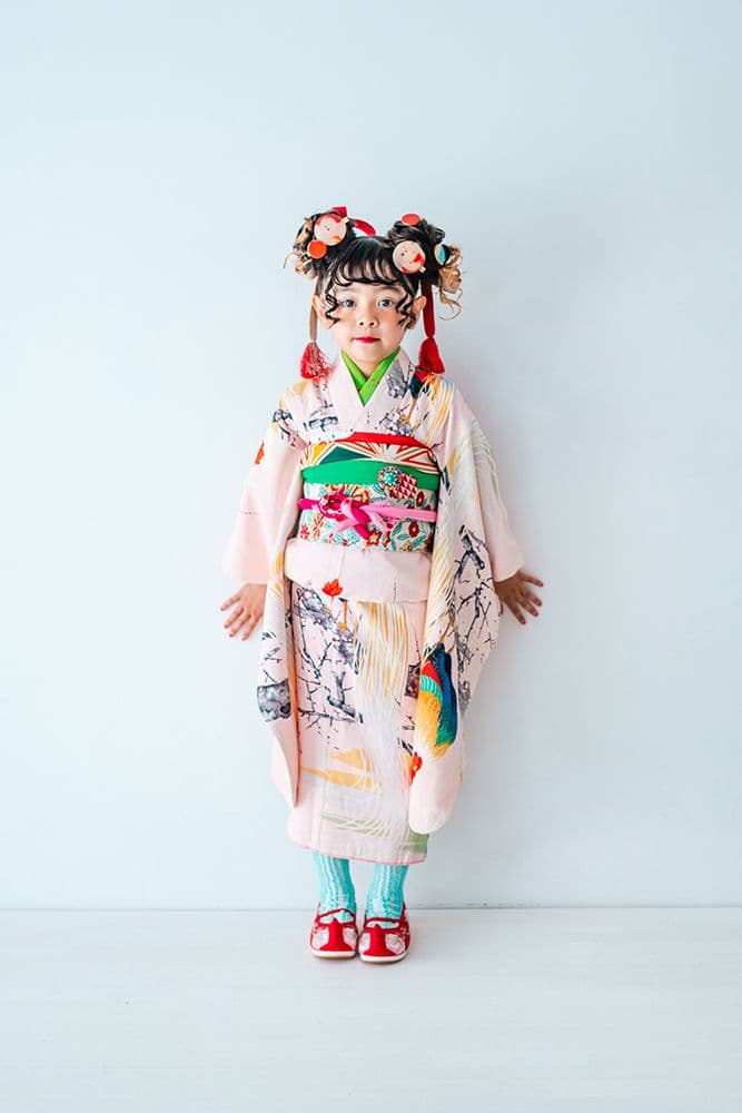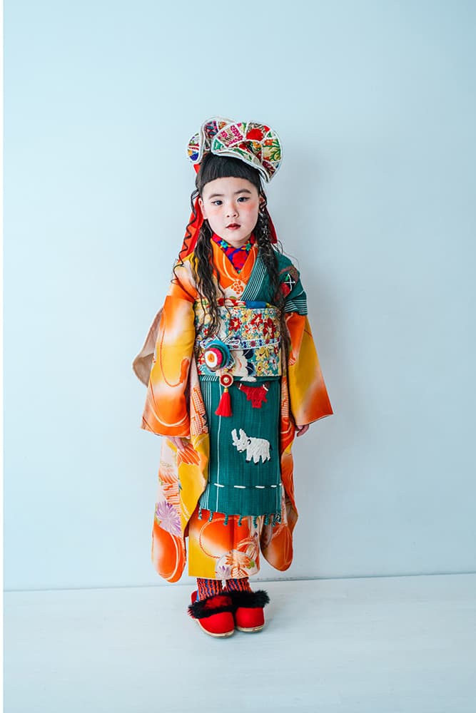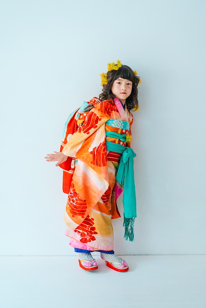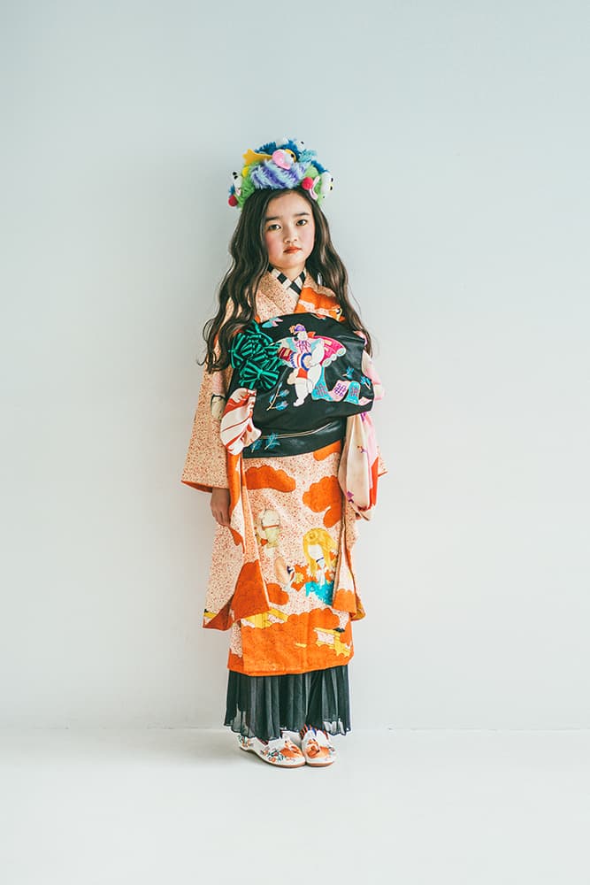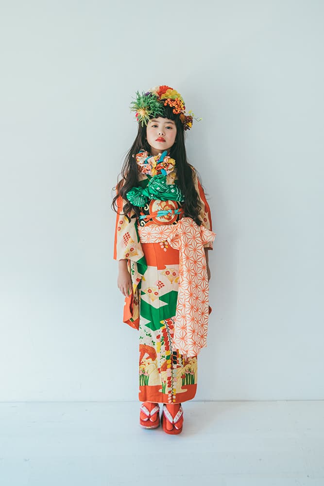 000/白に虹鶴・橙に虹鶴・双子/コーデ色違い/アンティーク