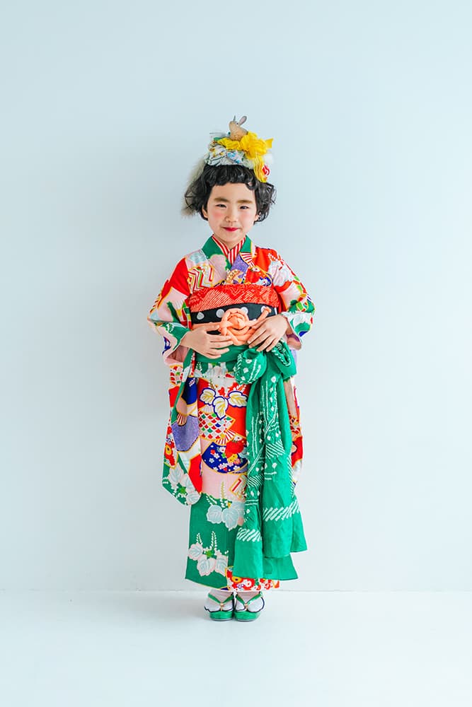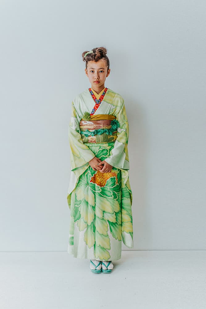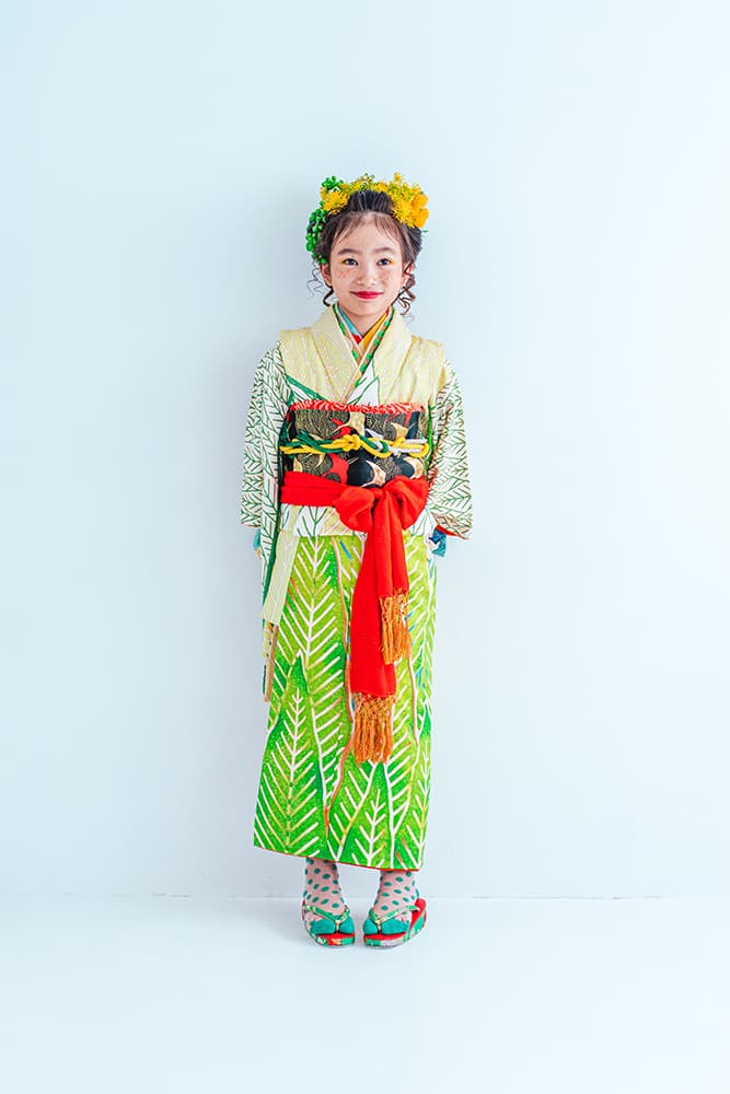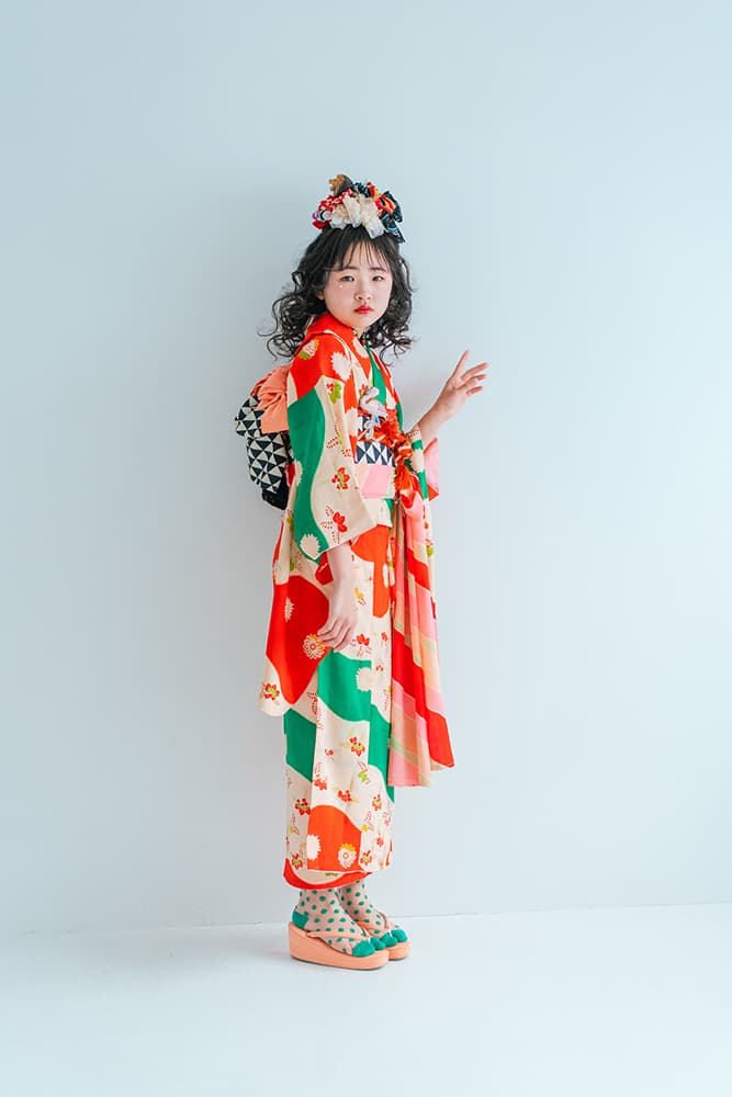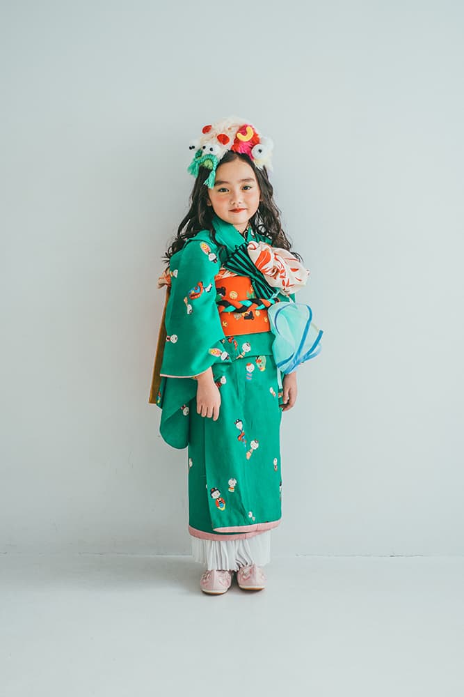 000/花扇・下緑・下赤・双子コーデ/同生地/アンティーク・