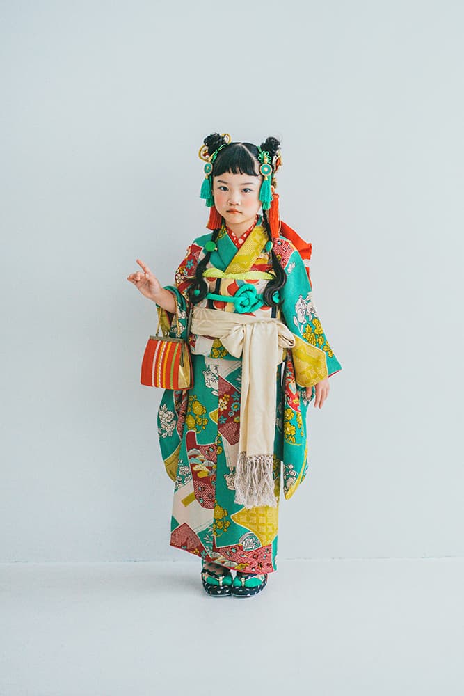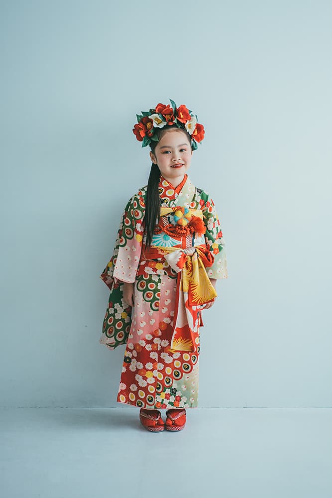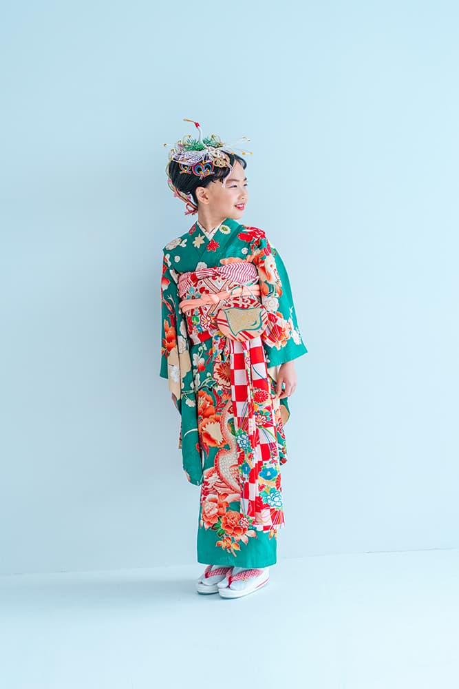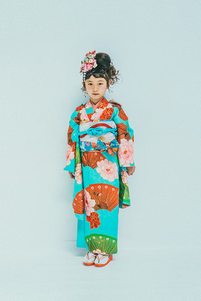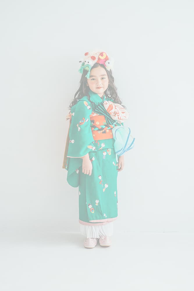 000/花扇・下緑・下赤・双子コーデ/同生地/アンティーク・